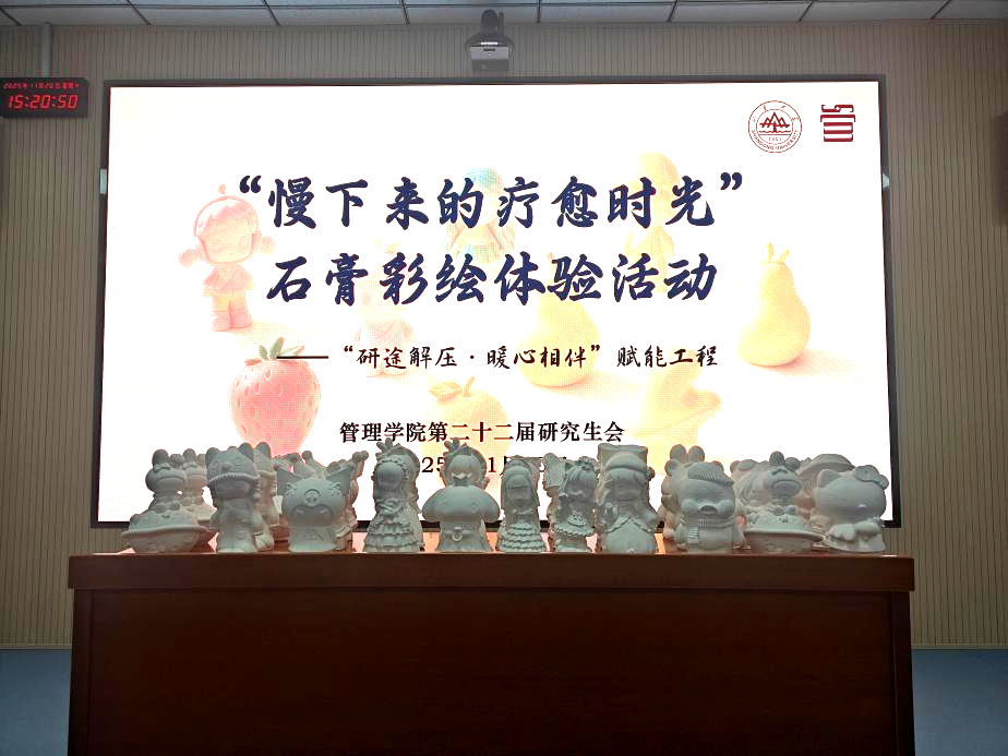研究生心理健康教育是学院育人工作的重要内容,也是落实“五育”并举的具体举措。为减轻研究生学习科研压力,缓解焦虑情绪,11月20日,管理学院于中心校区组织开展“慢下来的疗愈时光”——研究生石膏彩绘体验活动。活动筹备阶段,工作人员提前备好绘制所需的石膏坯及颜料,并提供渐变色晕染、细节勾线、颜料补充等方法指导。同时,在操作台铺置保护膜,为同学们配备围裙及手套,做好设施使用及卫生保障工作,为活动开展创造良...