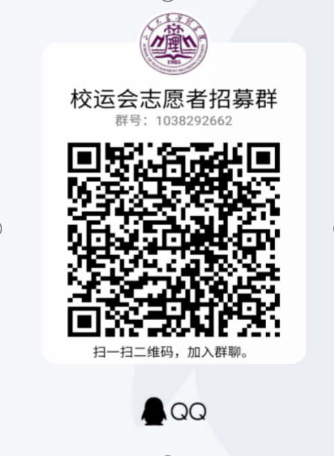 采取线上报名方式,有意愿的同学请务必于5月13日中午前加入“校运会志愿者招募群”咨询相关事项(群号为:1038292662),您也可以扫描下方二维码加入本群。