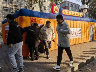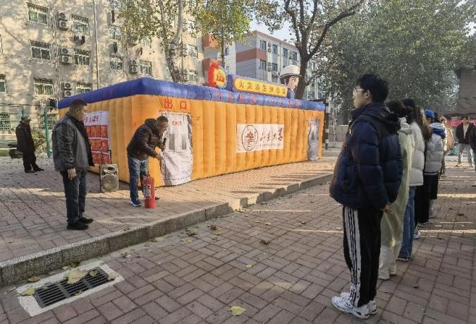 随后,同学们分组有序进入模拟灭火体验馆和模拟烟雾逃生馆,实地进行灭火和逃生演练。依次进入模拟逃生演练室,训练在黑暗环境中跟随安全出口标识找到安全出口以及保持弯腰低头前进的能力;模拟灭火器使用,训练灭火注意事项及相关动作要领。