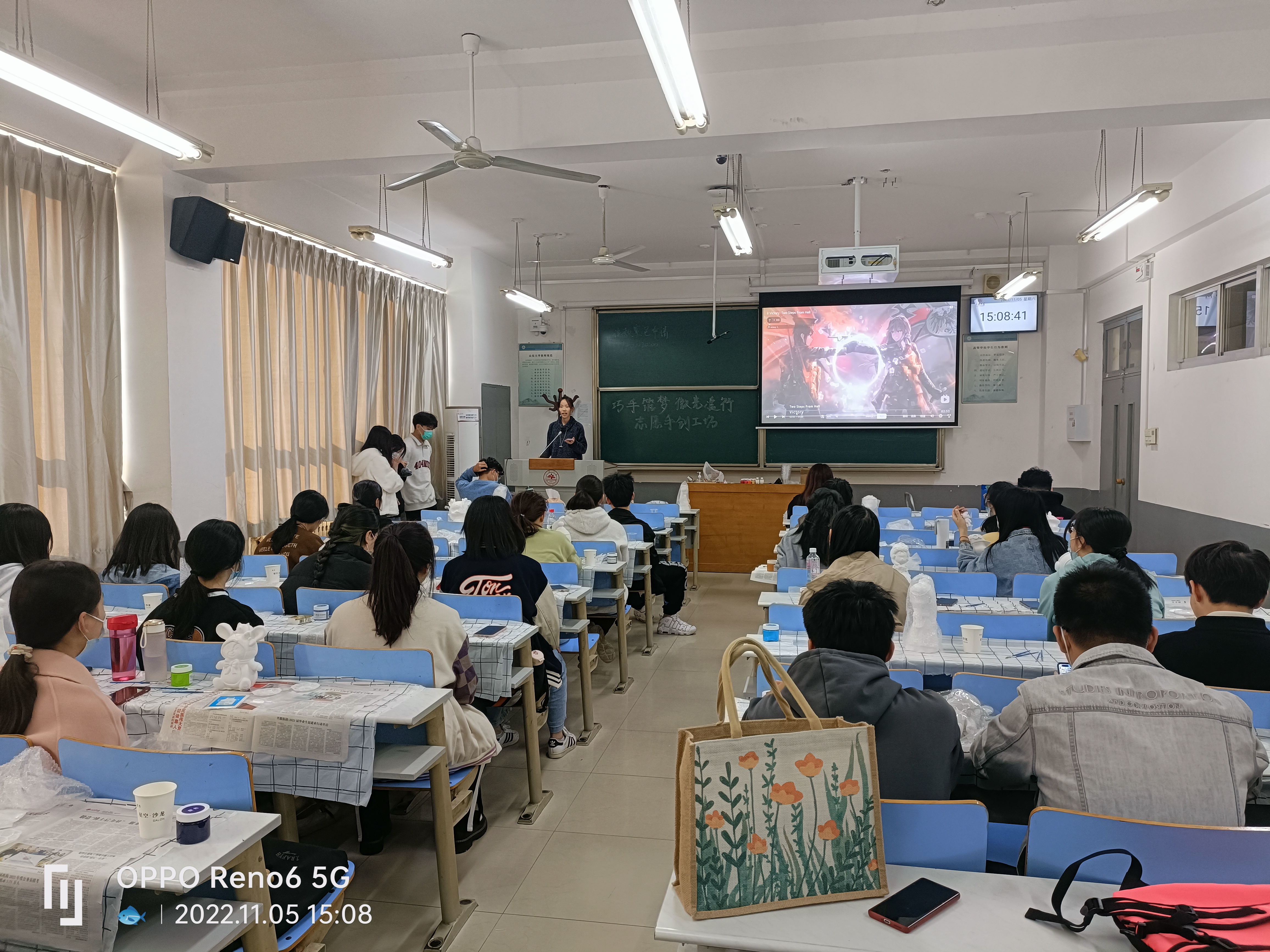 2022年11月5日,工商管理类专业6班开展“巧手筑梦•微光追行”志愿手创工坊活动,活动由团支书高旖苒组织和主持,工商六班全体成员参加。