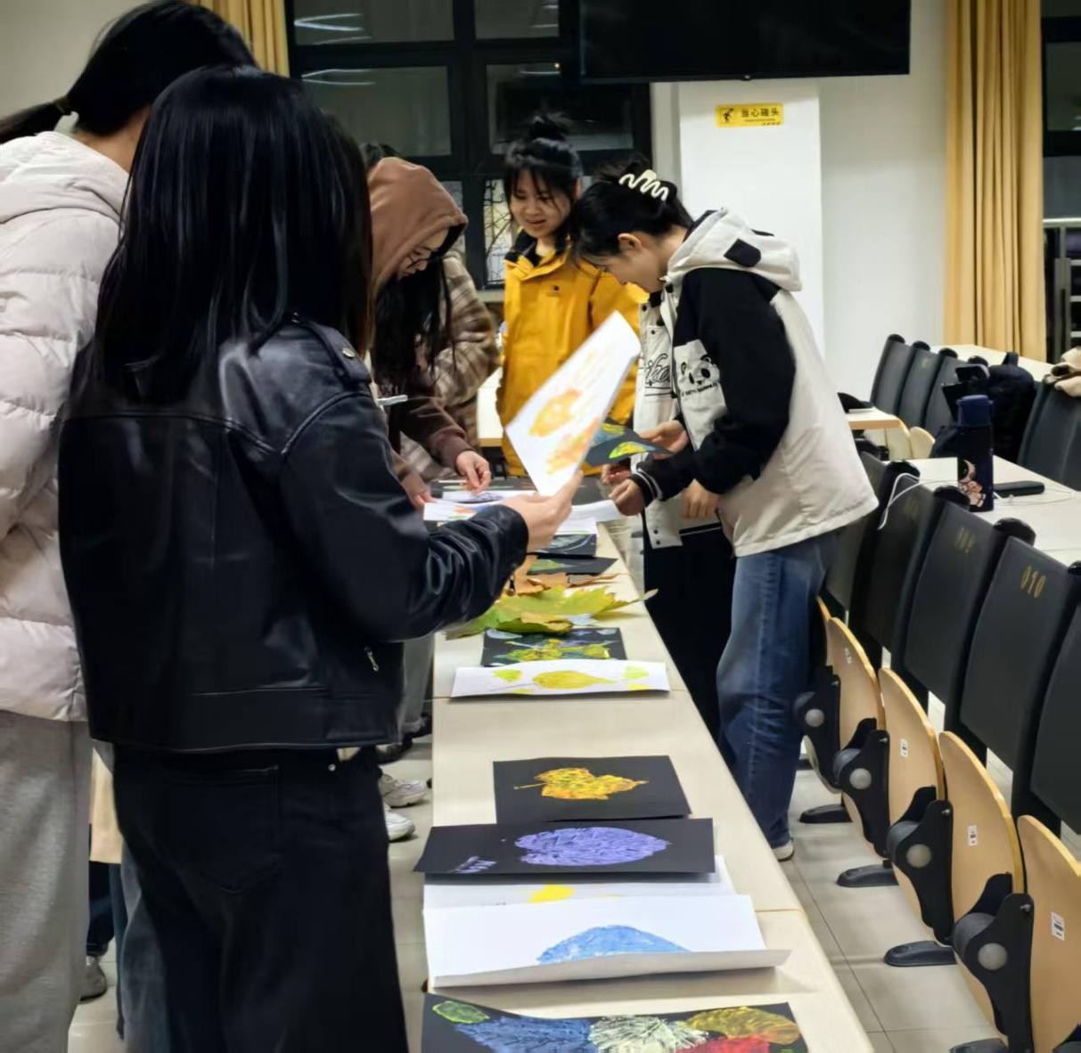 在活动最后,同学们纷纷展示自己的作品,分享创作心得。同学们表示,平时忙于学业,很少有机会静下心来做手作,这次拓印活动让他们可以放松下来,看着树叶的纹路在纸上慢慢显现,特别有成就感。在树叶上写下心声的环节也很有意义,仿佛把压力都释放了出来,还认识了同样喜欢艺术创作的小伙伴,收获满满。