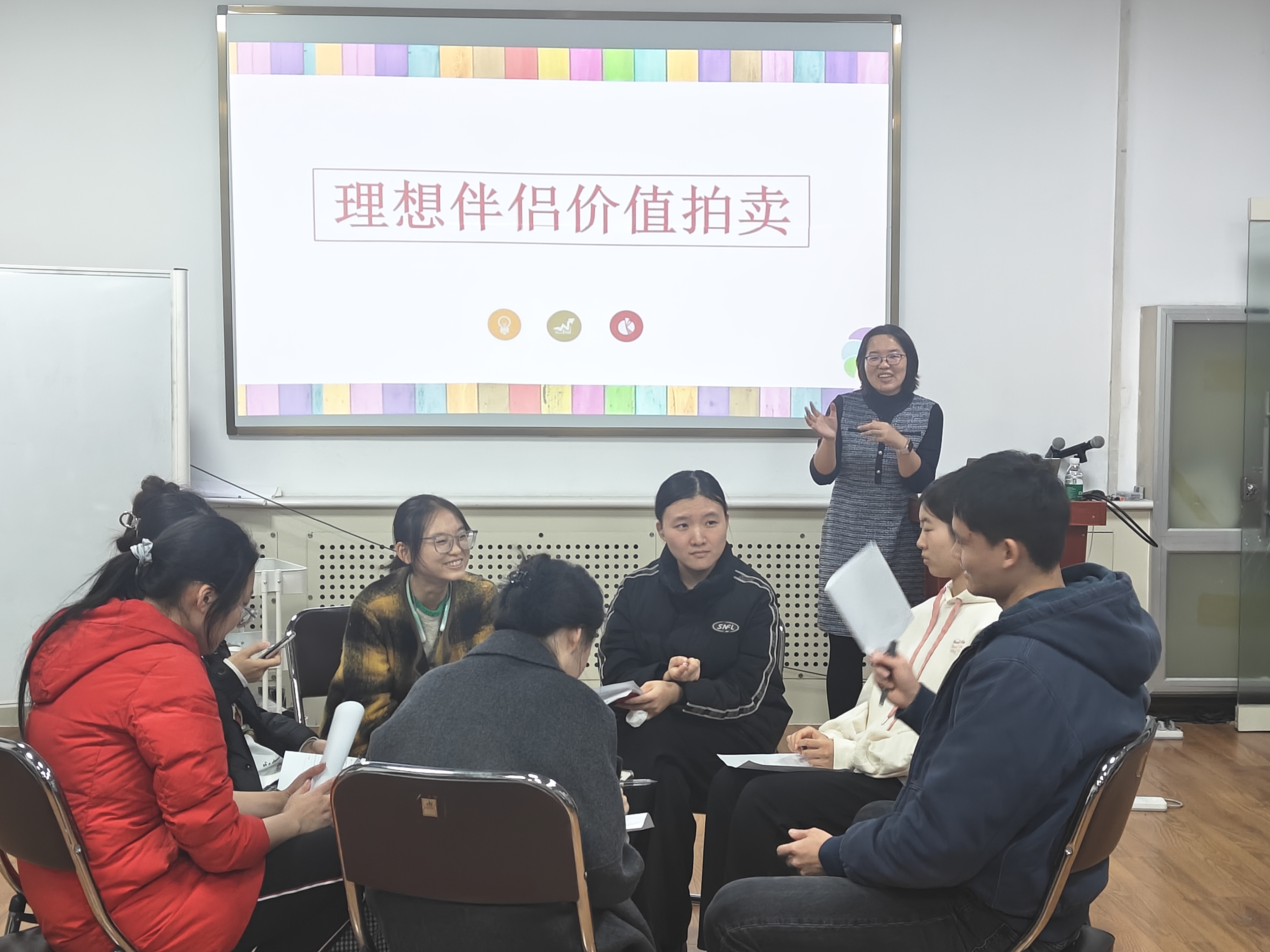 “理想伴侣价值拍卖”环节采用模拟竞拍的形式,从内在素养和外在条件两个维度引导参与者对理想伴侣具备的特质进行排序和竞价。各组同学通过充分讨论与审慎抉择,不断厘清自己在亲密关系中的价值取向。这一过程不仅让参与者更好地理解了自身的情感需求,更让他们深刻认识到经营一段健康恋爱关系所需具备的关键要素。