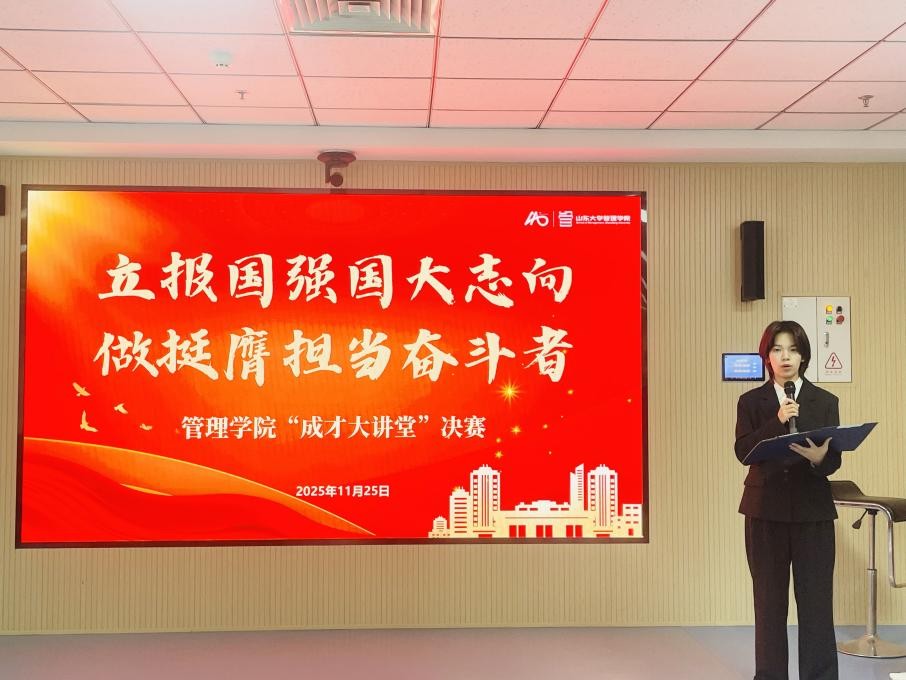 回望峥嵘岁月,感悟家国情怀。本次成才大讲堂决赛不仅为管院学子提供了展示才华、交流思想的平台,更是一堂生动的理想信念教育课。选手们将个人追求融入强国建设、民族复兴的伟大征程,用铿锵誓言与坚实脚步彰显了管院学子的爱国意志与奋进风采。未来,管理学院将继续深化思想引领,激励广大师生以青春之我、奋斗之我,为民族复兴铺路架桥,为祖国建设添砖加瓦,为实现中华民族伟大复兴的中国梦贡献磅礴青春力量。