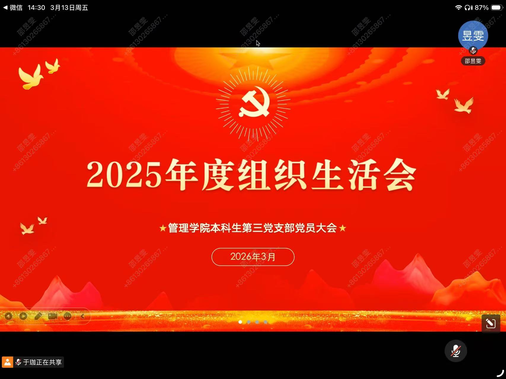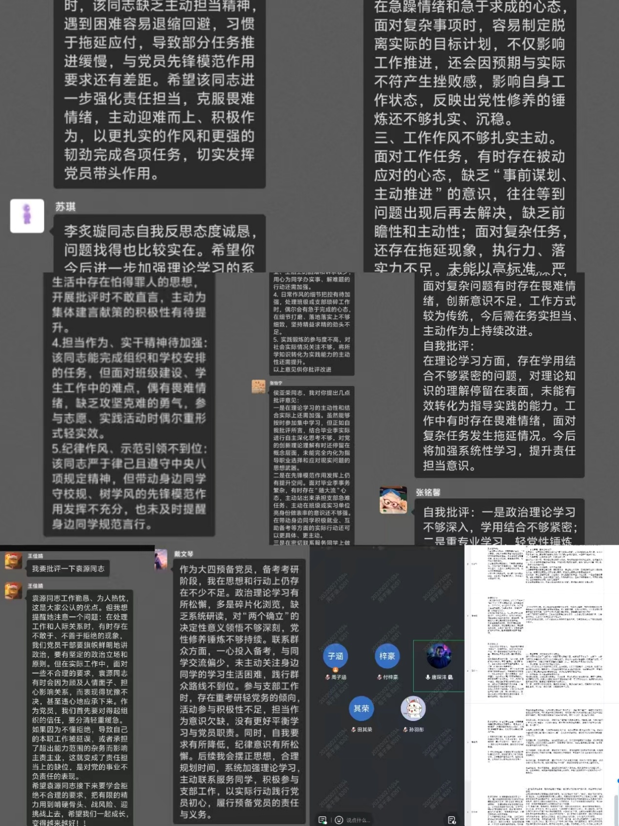 会议第五项,在九个分会场同步开展批评与自我批评,由党支部书记于珈统筹主持。全体党员紧扣思想、学习、工作、作风等方面,深入查摆不足、坦诚交换意见,做到自我批评不遮掩、相互批评有“辣味”,真正达到红脸出汗、排毒治病、增进团结、共同提高的效果。