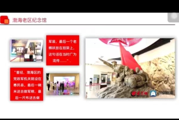 受疫情影响,本次活动转为线上开展,但同学们的热情丝毫不减。在此次活动中,首先,王诗悦带领同学们回溯党史历程。其次,分别由李嘉修、安雯博、陈由伸三位同学介绍他们的红色家乡。李嘉修通过PPT与同学们分享了他的家乡山东省滨州市的红色故事。他的分享以“最后一碗米送去做军粮,最后一尺布送去做军装,最后一个老棉袄放在担架上”这句话为结,给同学们留下了深刻印象。随后,安雯博和陈由伸分别介绍了河北和安徽合肥的红色故事,带领同学们向时光深处漫溯,在一个又一个红色故事中继往开来。