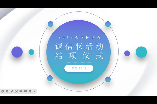 12月12日,19级工商管理(国际商务方向)举行“诚信状”活动结项班会。团支书徐昊主持班会,全体同学参加会议。