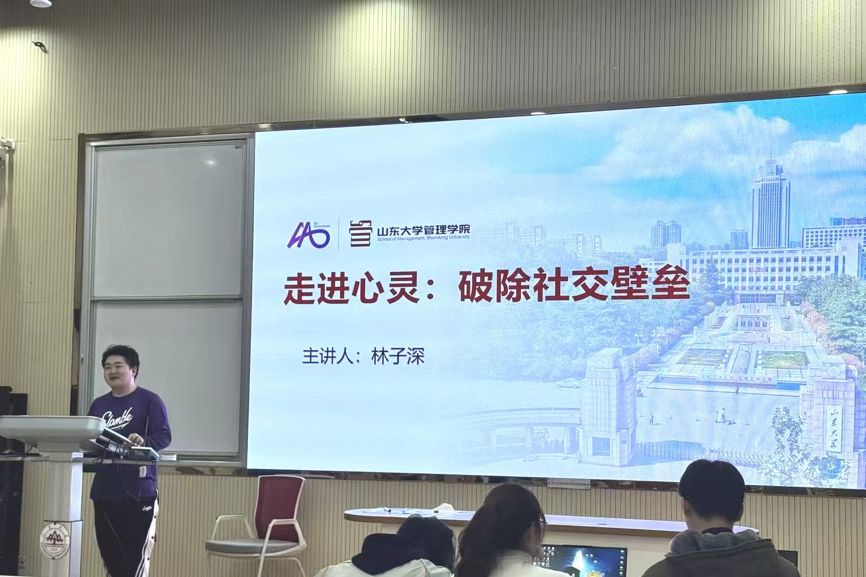 10月30日晚19:00,为促进学生更好地人际交往,以更加积极的心态面对社交,管理学院本科2024级在中心校区电教北楼102开展了“走进心灵——人际交往:打破社交壁垒”心理主题讲座。本次讲座由管理学院2024级辅导员林子深主讲,2024级会计学及管理科学与工程5个班级共一百余名同学参与。