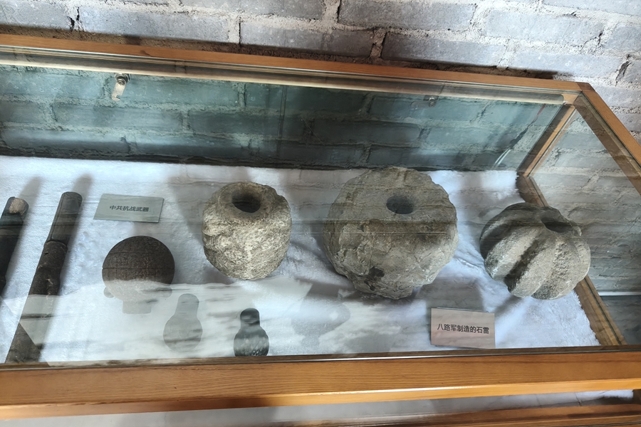 与装备精良的日军相比,胶东人民的武器装备明显逊色许多,很多是老百姓利用现有物品改装或者自制而成的,如土枪、石雷、砍刀等。其中最让我印象深刻的,是一顶游击队员侦察敌情时戴的“铁帽子”。物如其名,那是一顶用厚铁板铸成的特殊“帽子”,只在中间留了一个拳头大的观察口,简单笨重,却彰显着东北乡人民利用一切资源坚持抗战的决心与灵活创新的智慧。历经八十余年,它早已锈迹斑斑,上面的弹痕也模糊到难以辨认。凝视着它,我仿佛看到一名游击队员顶着沉重的铁帽子,在枪林弹雨中侦察敌情……