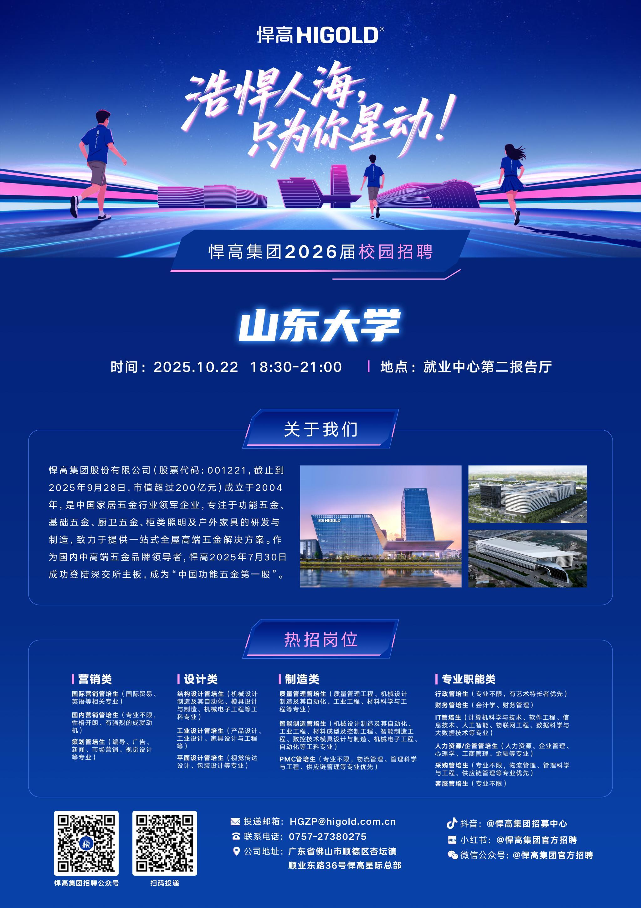本次校招是悍高集团首次面向山东大学校招,人员需求较往年翻倍,岗位与专业匹配度更精准,薪资福利体系具竞争力,为管理学院学生打造优质职业起点!