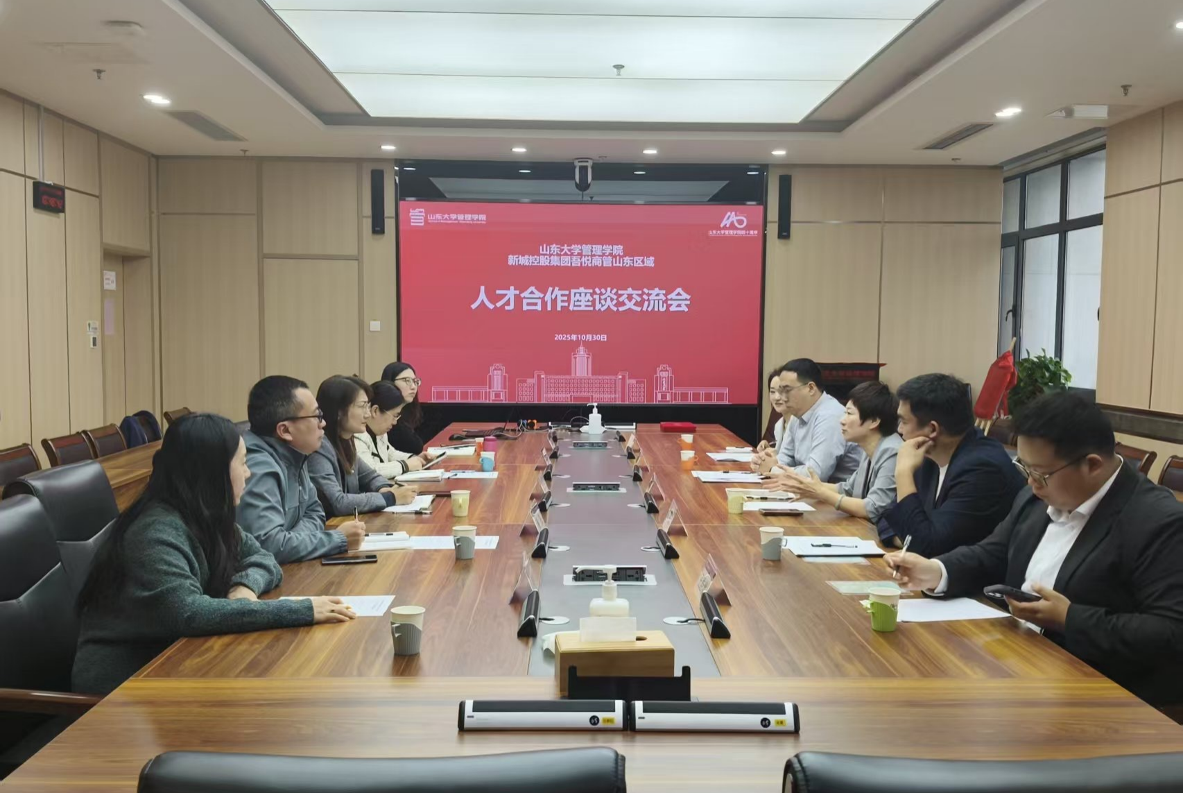 为深化院企合作,推动人才培养与企业需求精准对接,10月30日上午,山东大学管理学院与新城控股集团吾悦商管山东区域组织开展人才合作座谈交流会。新城控股集团吾悦商管山东区域总经理金玮、新城控股集团总部人力资源副总经理张习文、新城控股集团吾悦商管山东区域行政人事副总经理李甲荣等企业代表,管理学院党委副书记李抗及各年级辅导员参加座谈。