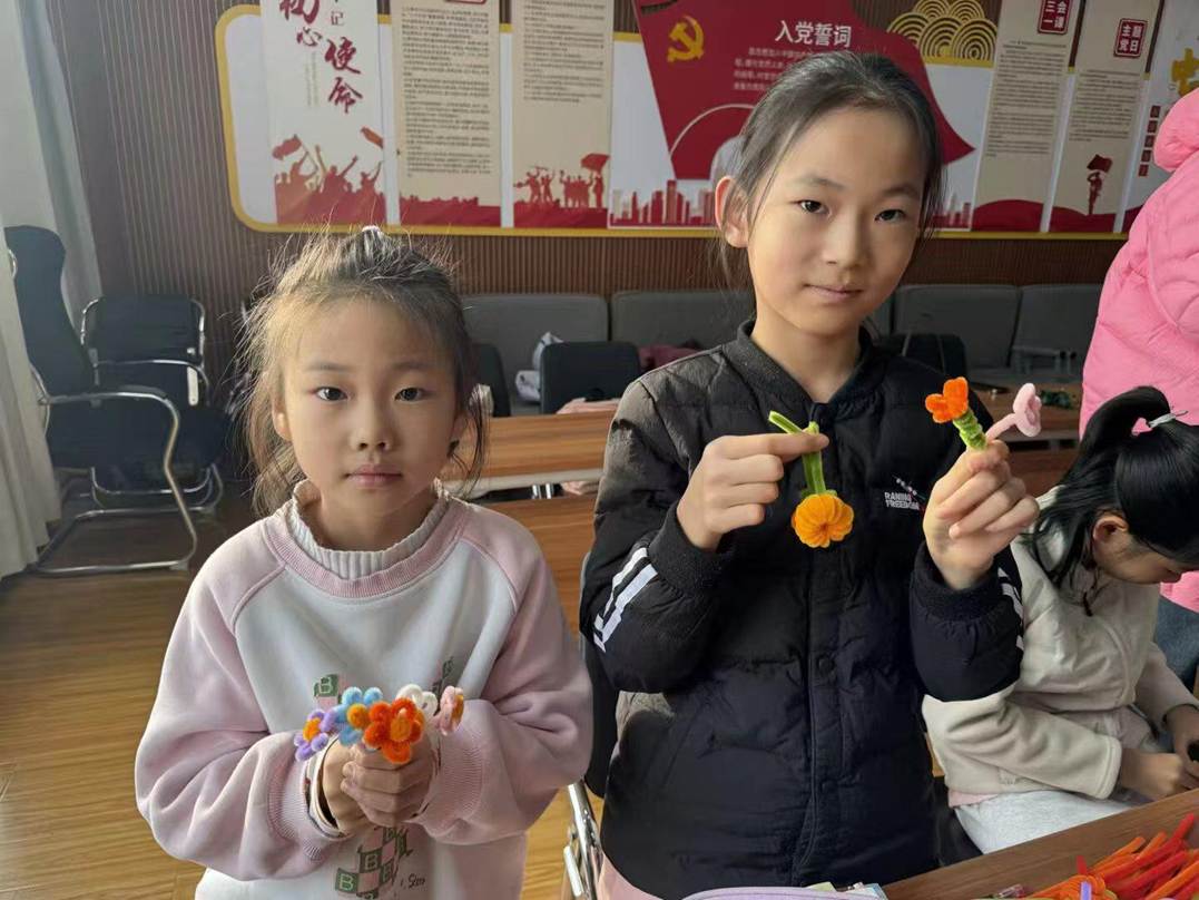 2月3日下午的扭花活动以“情绪花园”为主题,志愿者先引导孩子们认识自己的情绪小花——开心、难过、愤怒……随后,志愿者发放五颜六色的扭扭棒,带领孩子们制作扭扭花和小柿子。蓝色、粉色、紫色……孩子们用灵巧的小手创造出属于自己的情绪小花,有的还做出了柿子树。在动手的过程中,孩子们收获了治愈与快乐。
