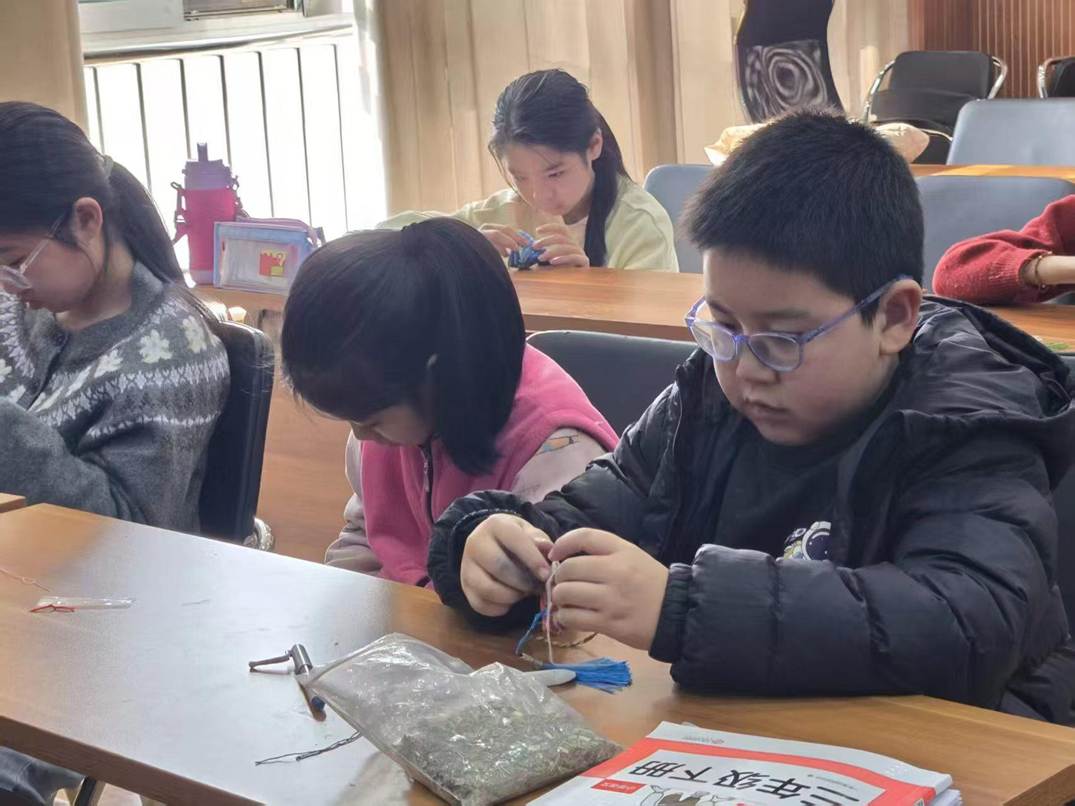 2月5日上午,实践队开展香囊制作活动。首先向孩子们介绍了香囊的起源与发展,讲述香囊在古代有驱蚊避秽、寄托祝福的作用。随后,在志愿者的示范下,孩子们进行穿针引线,缝制布袋,添加流苏,填充艾草……每一个步骤都充满了专注与乐趣。不一会儿,一个个独一无二的香囊在孩子们手中诞生。孩子们将香囊捧在手心,脸上洋溢着笑容。