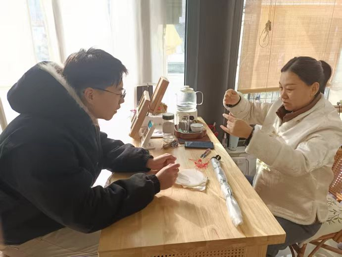 1月17日,团队前往鲁绣特色工坊玉萱阁开展实地采访与工艺沉浸式体验活动。在工坊匠人的专业讲解与现场实操指导下,团队成员全程接触鲁绣从原料甄选、纹样勾勒、平针与盘金等经典针法运用到成品装裱的完整工艺流程,直观感受鲁绣针法的精巧技艺与纹样中蕴含的齐鲁文化美学韵味。同时结合项目数智化创新方向,团队与匠人深入交流传统工艺在现代设计中的融合难点,细致记录工艺实操要点与创新切入点,为后续鲁绣工艺数字化转化、数智化融合创新积累了一手实践素材,筑牢了扎实的实践基础。